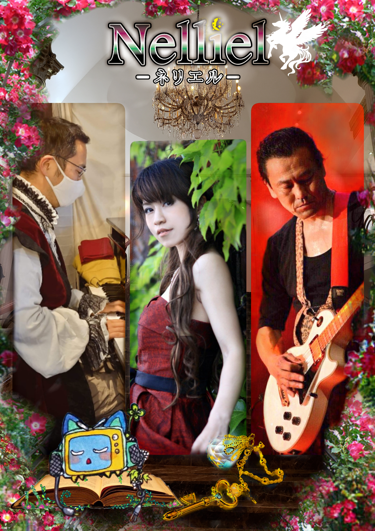 ネリエルの紅一点のストーリーテラー、ネルさま。「エメラルドボイス」で、透明感と優しさ溢れる歌声が特徴です。特に高音の声が綺麗だと初めて聞く方に言われています。
