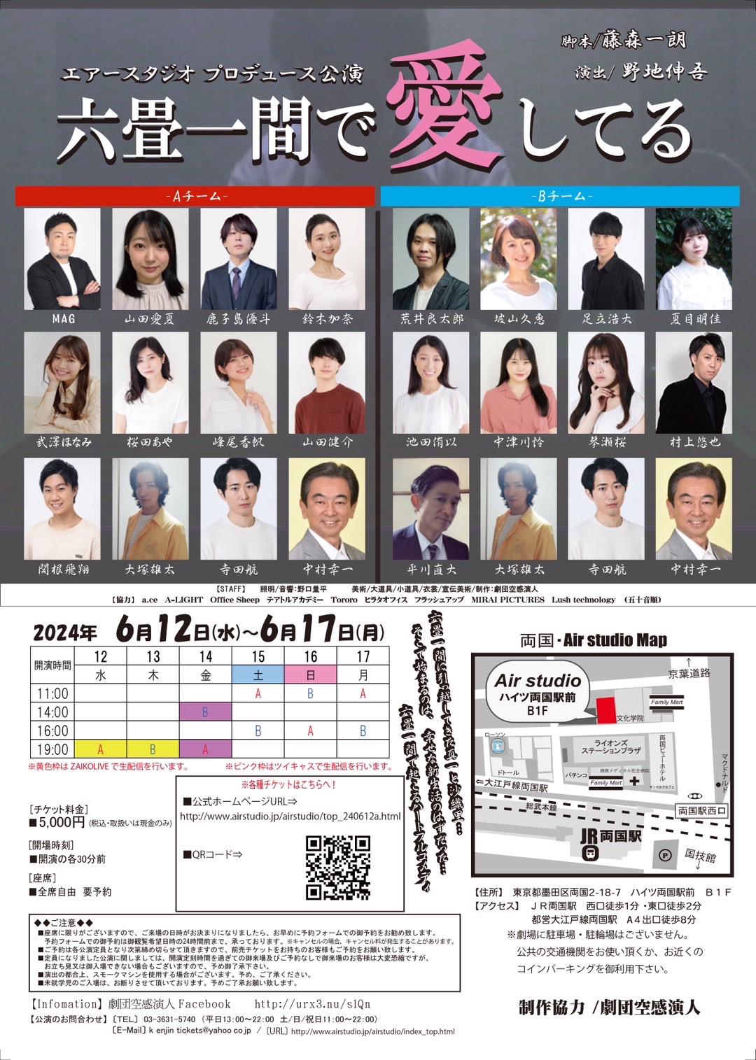 エアースタジオ両国6/12水曜日から6/17月曜日まで全10公演に出る為現在稽古真最中。みなさん応援ご観覧宜しくお願い致します。
