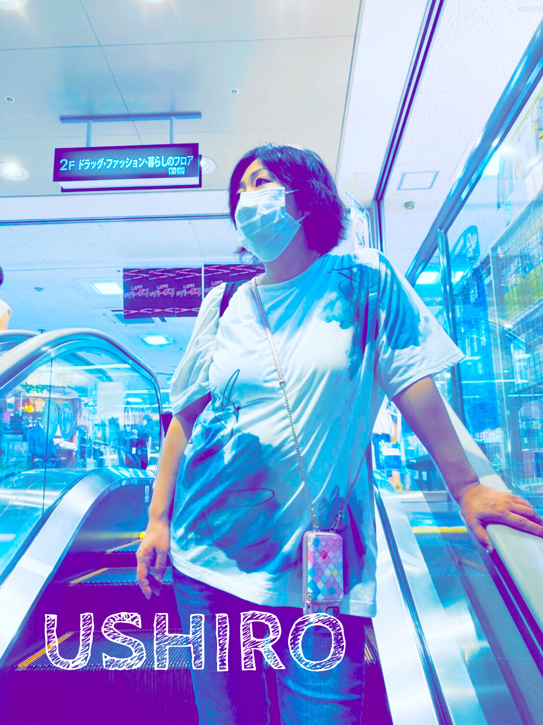スーパーのエスカレーターに乗っているだけの写真を素敵な色合いに変身させてみました。