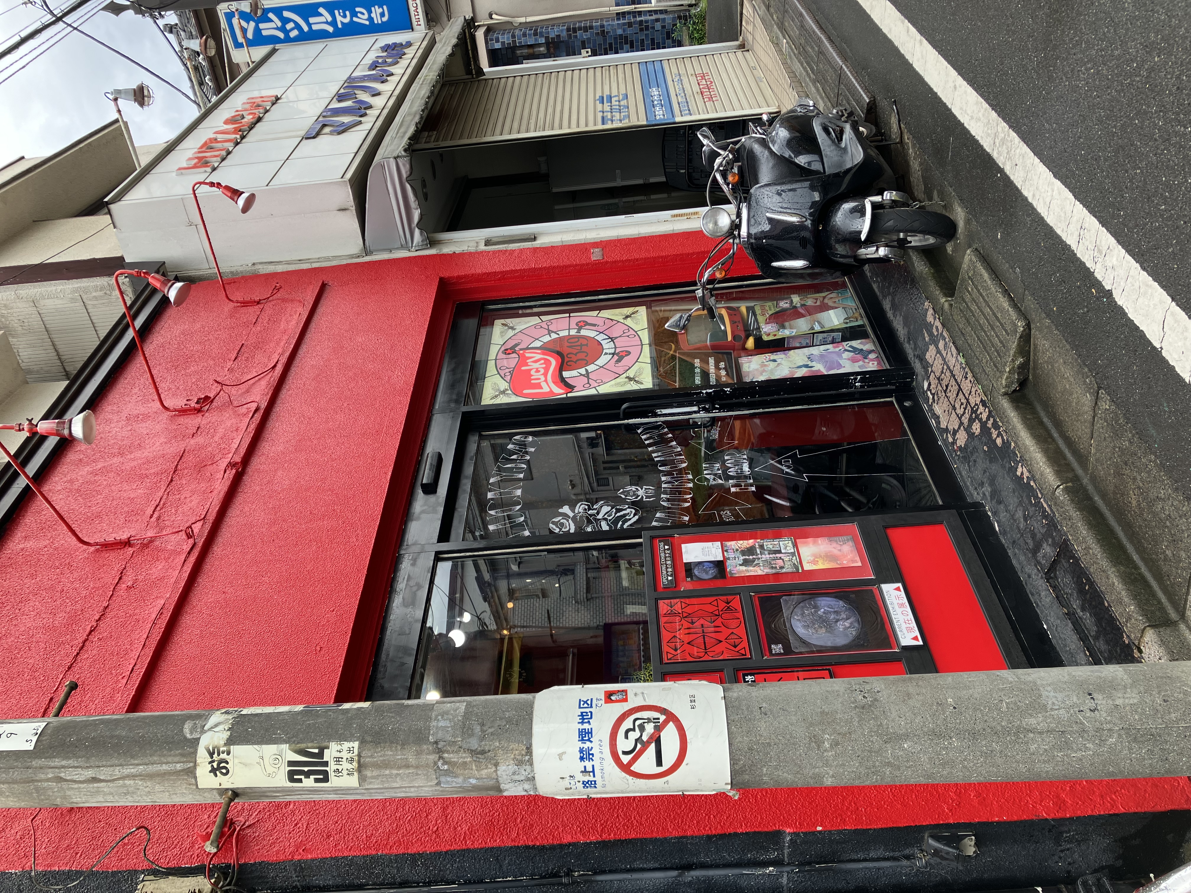 阿佐ヶ谷駅南口から5分かかるかかからないか位のところにあり、一階が美容室の外観も中も真っ赤な場所です。2階のギャラリーに行くには一階の美容室を突っ切らなければならないため、初めての方はちょっと勇気がいるかもしれませんが、美容室の方は慣れたものなので、全然臆せずに入って大丈夫です。